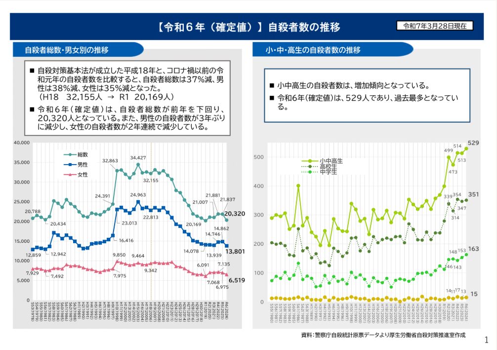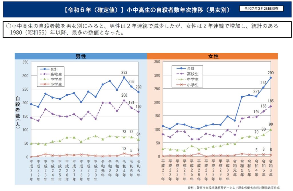 近年、こどもの自殺問題が党内、政府でも認知され、対策に関する取り組みが進められています。しかし、痛ましいことに、令和6年の一年間で小中高校生の自殺者数が529名と過去最多となり、こどもの自殺者数は増加傾向。こどもの尊い命が失われる状況は改善されていません。こども家庭センターの設置や各省庁での取り組みは進んでいるものの、対策が形式的で実効性を伴わないまま進んでしまっていることへの懸念があります。