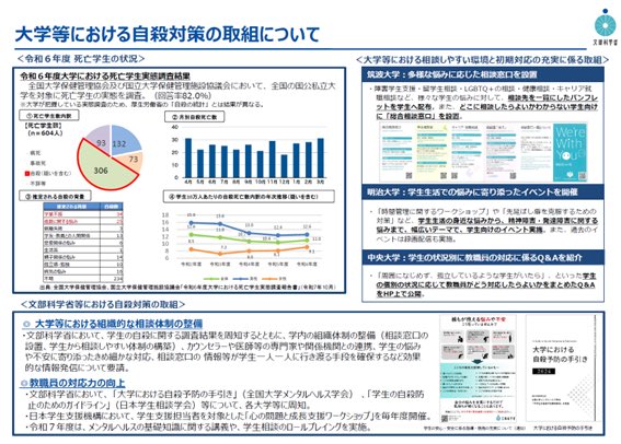 そのため、亡くなった後の背景調査や、自殺に至るまでの経過、直前の心理状態などを多角的に分析する「心理学的剖検」を積み重ね、予防対策に活かしていく仕組みの重要性が指摘されました。